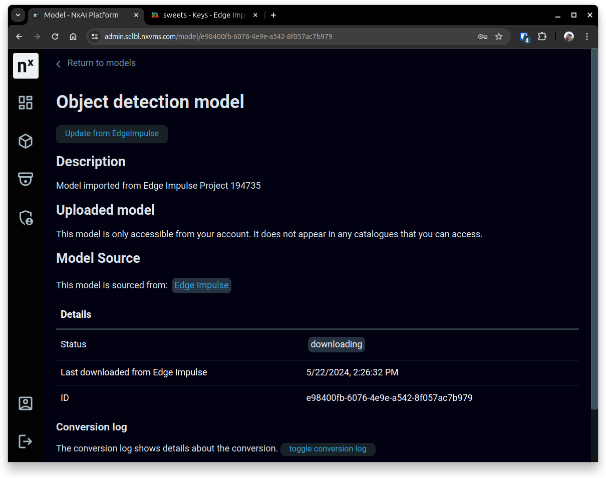 2. Coupling your Edge Impulse model with Nx AI cloud. We will show how to sync your Edge Impulse model with your model catalog.