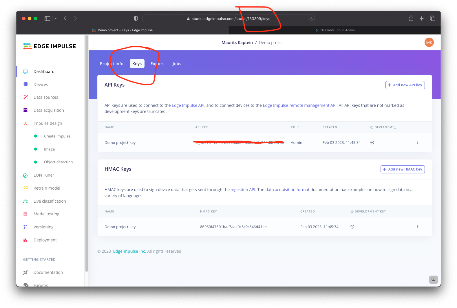 At this point you can use your Edge Impulse API key and project ID to import your trained model directly from Edge Impulse.