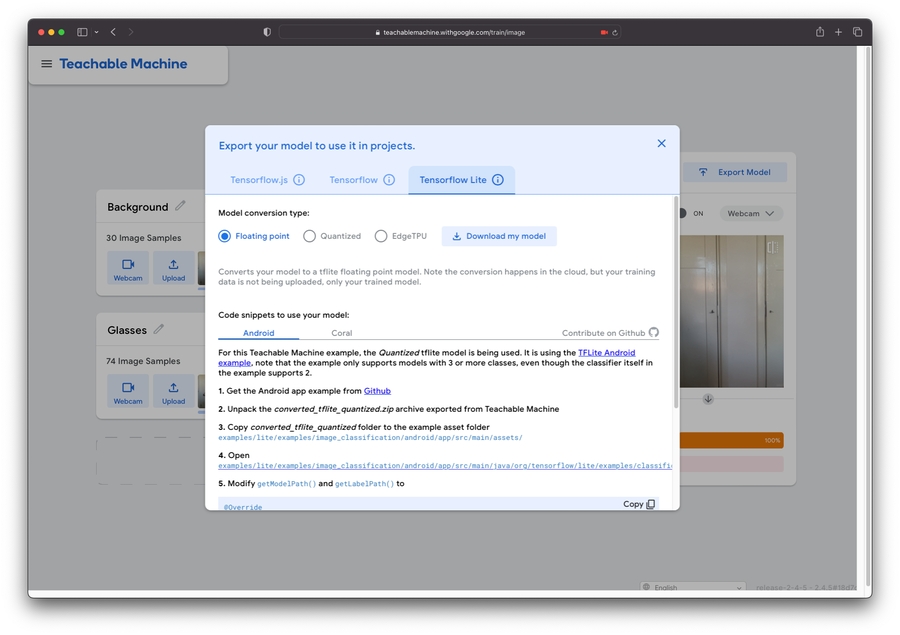 Teachable Machine is a web-based tool that makes creating machine learning models fast, easy, and accessible to everyone.