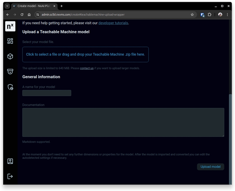 We currently support super easy exports from image classification models trained using Teachable Machine to Nx AI Platform. The steps are: