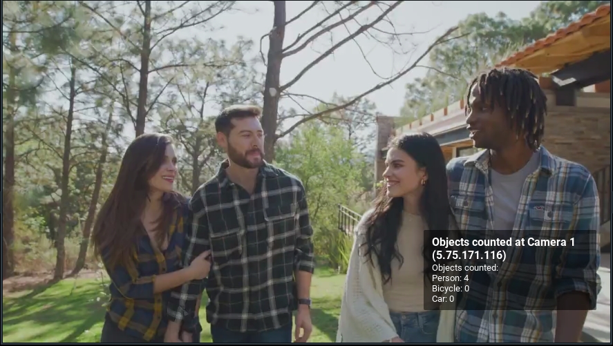 If set up correctly, and a model generating counts is selected and running, we should see an overlay on the camera feed showing us the object counts:
