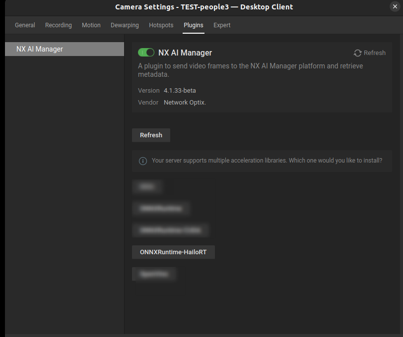If all is well, you should be able to select the Hailo runtime when enabling the Nx plugin as shown below: