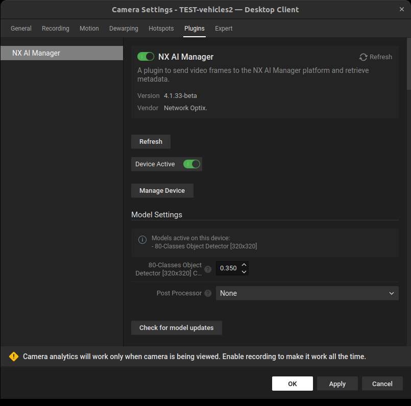 The Nx AI Manager offers the ability to operate multiple AI models at the same time. This flexibility allows you to efficiently manage resources and optimize the performance of your AI applications. However, it's important to consider the limitations of the hardware you're using. Specifically, each Hailo chip, whether it's the Hailo-8 or the Hailo-8L, is capable of running only one model at a given time. Therefore, the number of models you can run concurrently on a single machine directly corresponds to the number of Hailo chips installed in that machine. Failing to account for this limitation may lead to the AI Manager's failure.
