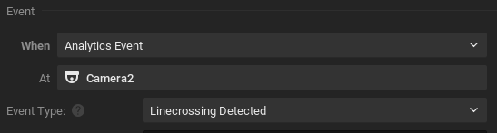 Note that the Line Crossing Detection postprocessor may have to be selected, and 'Apply' button clicked, before the event can be made.